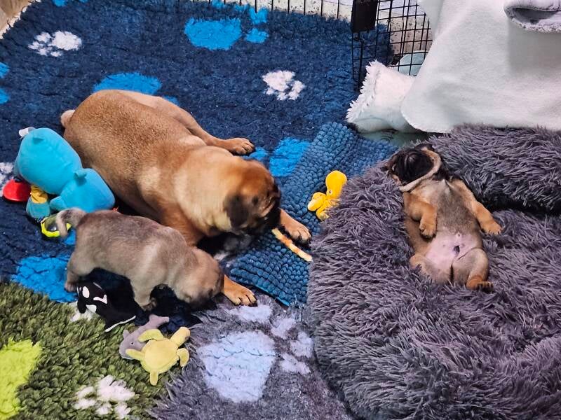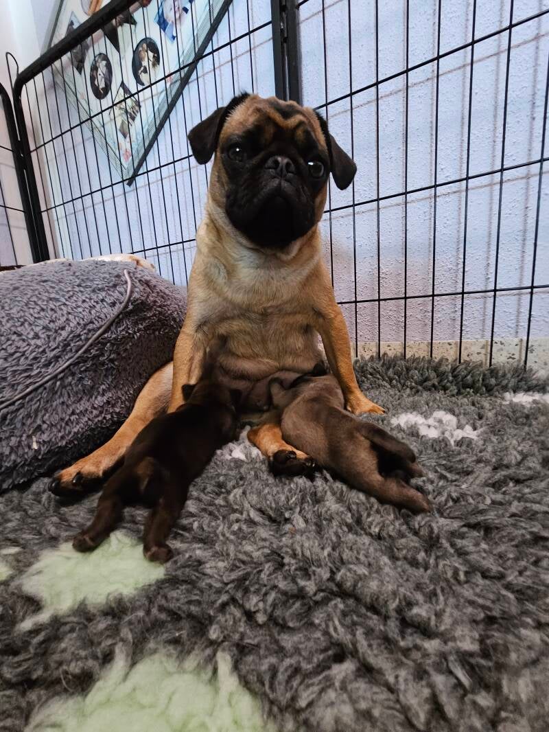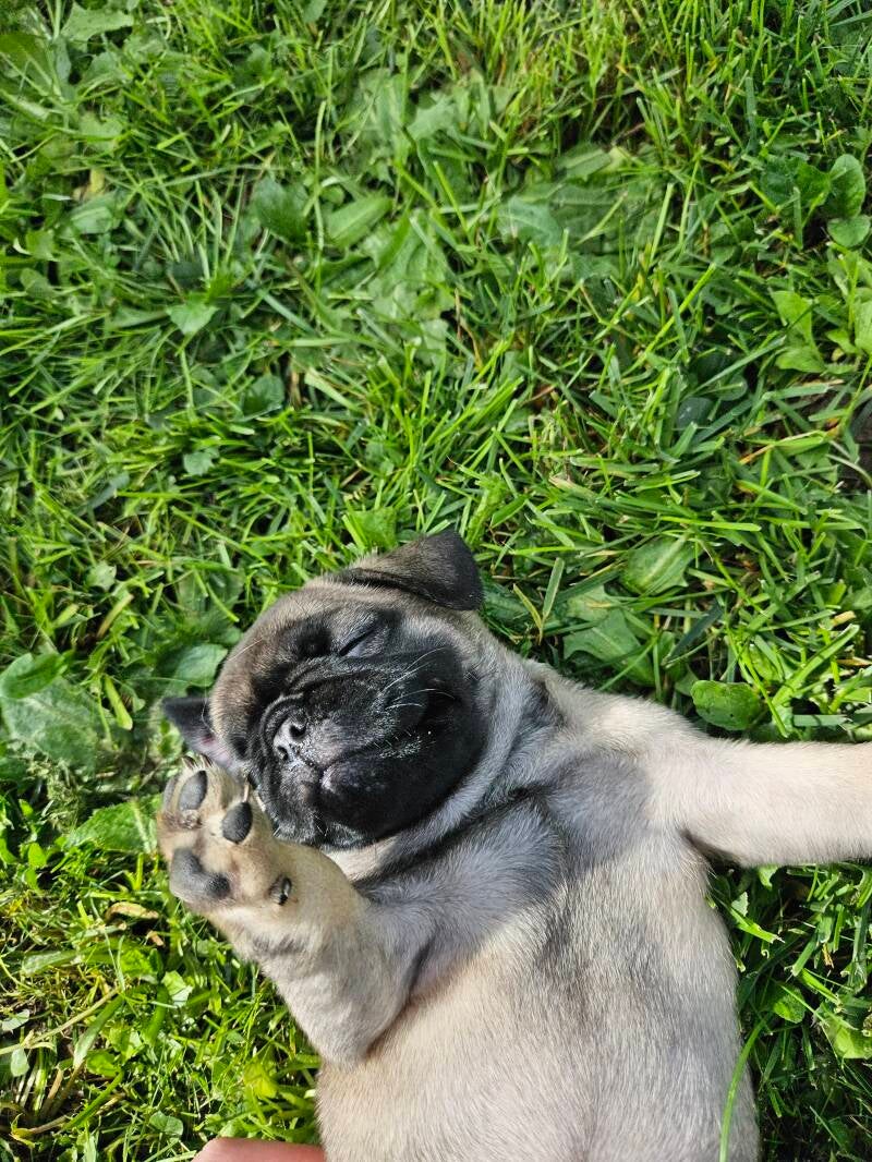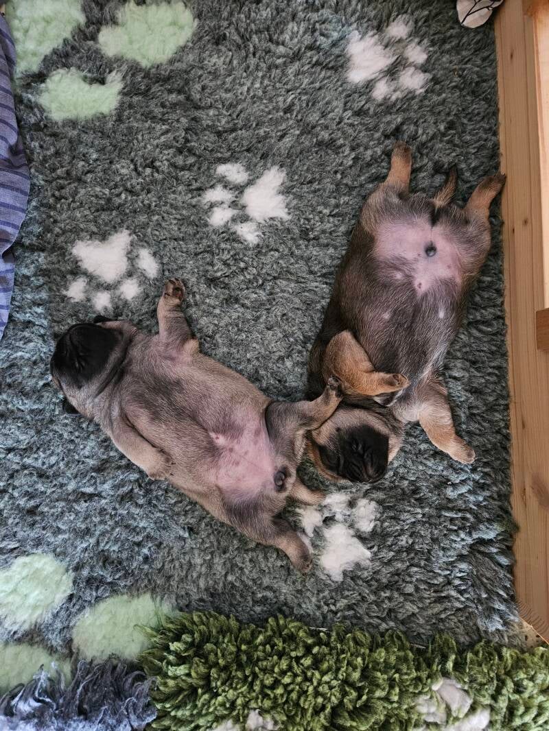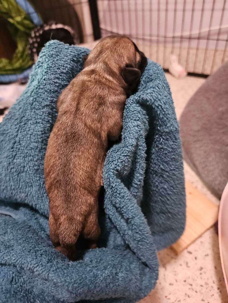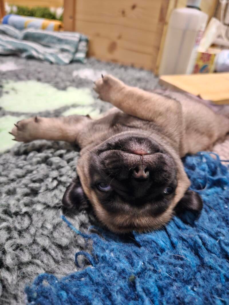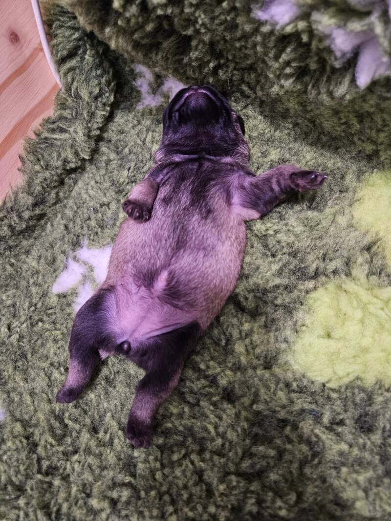 Unser Aramis hat es leider nur bis zum 5. Tag geschafft. Gerade beim ersten Wurf ist das schmerzhaft. Umso dankbarer sind wir, dass sich Albert und Asteria bester Gesundheit erfreuen und gut entwickeln.